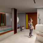 Vom 1-Geschossigen Kur- und Freizeitbad „Riff“ gelangt man über einen Bademantelgang in Form einer Brücke zum 4-Geschossigen Riff Resort. Der 3-Geschossige Neubau, als dritter Eckpunkt dieses Ensembles, schließt nun wiederrum durch eine Brücke an das Riff Resort an und schafft somit einen